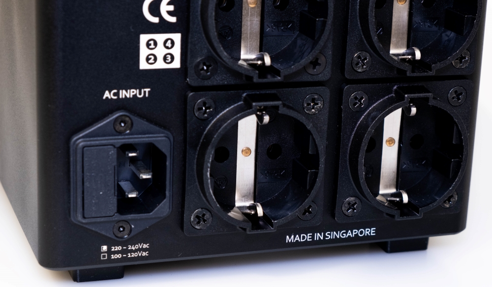 It is very important to know that all outlets are labeled from 1 to 4 because outlet 1 will have the best isolation and sound quality, followed by 2, 3 and 4. It is advisable using sensitive gear like streamers, DACs, turntables, digital servers on the 1 and 2 outlet, and high-voltage drawing equipment on the 3-rd and 4-th outlets – please keep that in mind.