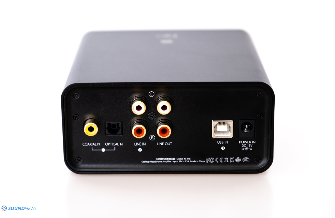 Since K5 PRO can be considered a desktop class DAC and headphone amp, on its back you will find 3 digital inputs (USB, Coaxial and Optical), a RCA Line-In and a RCA Line-Out, this means than K5 PRO can be used as a DAC/Amp, as an Amp only or as a DAC only, I really like that.