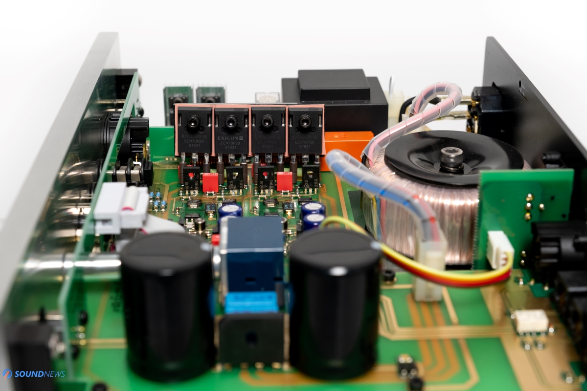 I actually opened it up to see all the magic unfolding and was pleased to find an all-discrete design, 4 EXICON mosfets, some huge KEMET power banks, a very advanced ultra-low-noise power supply made from a toroidal transformer and of with another power transformer. This is the sole reason Kinki Studio is recommending a 300-hour burn-in, those big caps and both transformers need time in settling down.