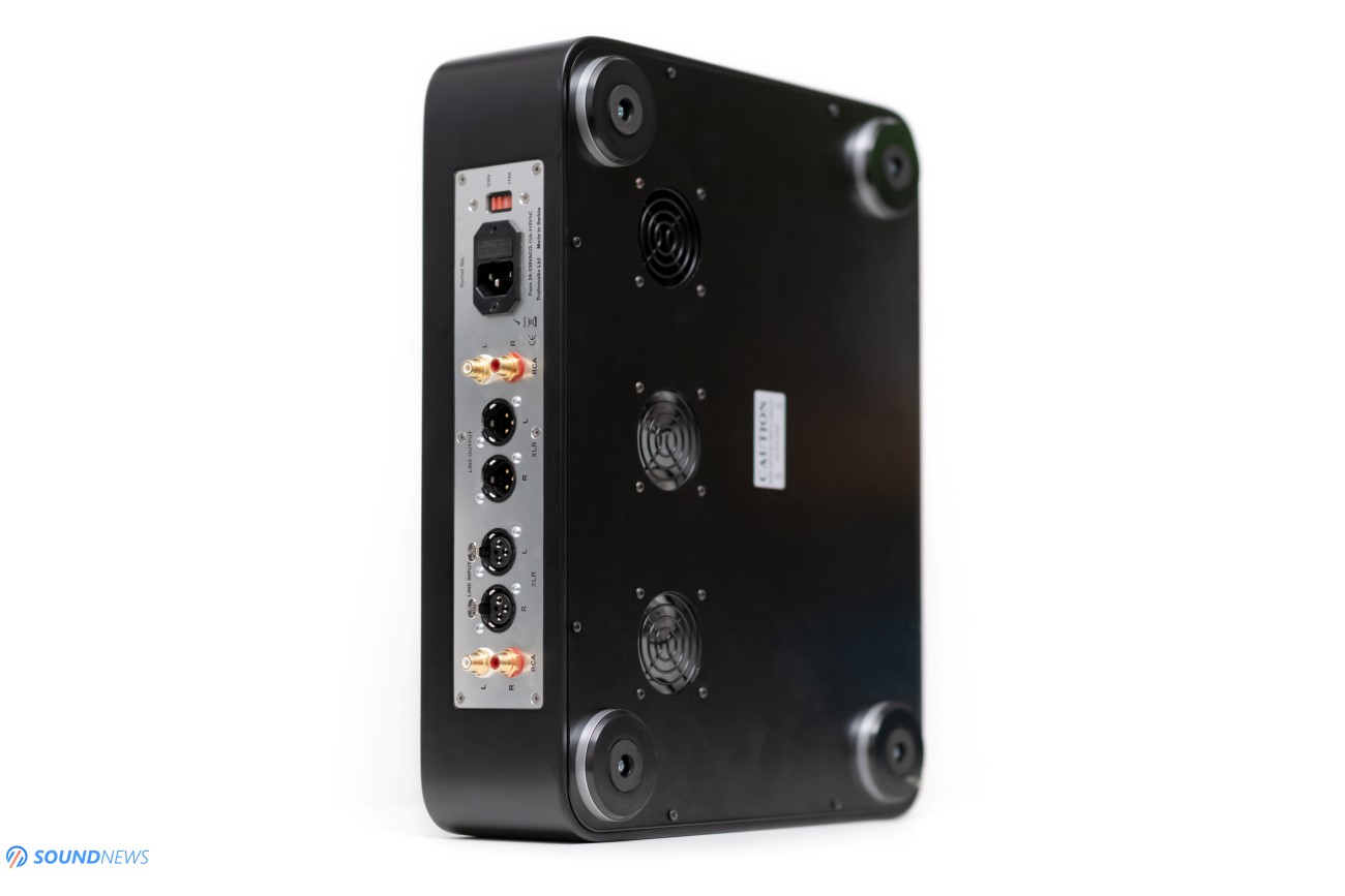 Since it can work as either a headphone amplifier or as a preamplifier, you’ll find a pair of RCA and XLR inputs and a mirrored symmetry of analog outputs. An AC inlet, a voltage selector (230V or 115V) and a serial number are the last things you’ll see in there.