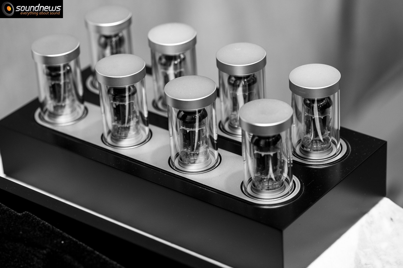 The amplifier is quite interesting, each tube from the total of eight is placed in a vacuum quartz cylinder to eliminate all vibrations from the outside environments and to keep the tubes at a constant temperature
