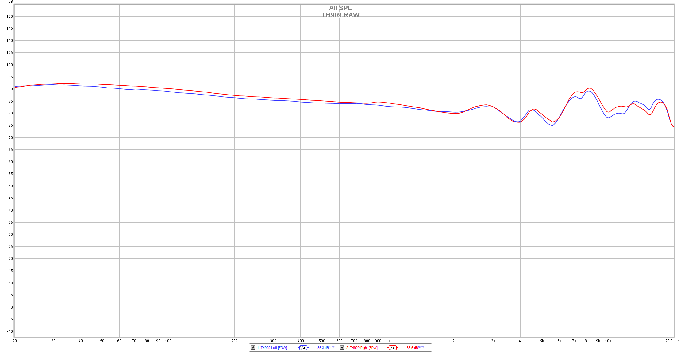 These are their RAW measurements without any kind of smoothing applied. Driver matching is good, frequency response is very much the same that I have described in the previous chapters and sincerely I am not surprised to see it this way. There is a small deviation in the treble region, but nothing to be worried about. As you can see, TH-909 was tuned towards a super-fun and hard-punching experience with bass and treble taking a step forward.