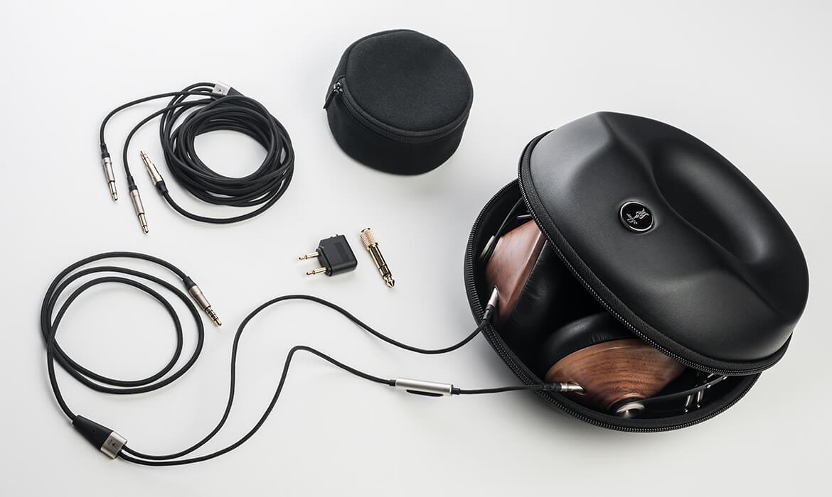 There is also a small fabric pouch that houses two pairs of detachable headphone cables: A longer one and a shorter one with an in-line remote and a microphone to be used with a smartphone, there is also a 1/4”(6.35mm) to 1/8” (3.5mm) headphone adapter and an airplane jack adapter.