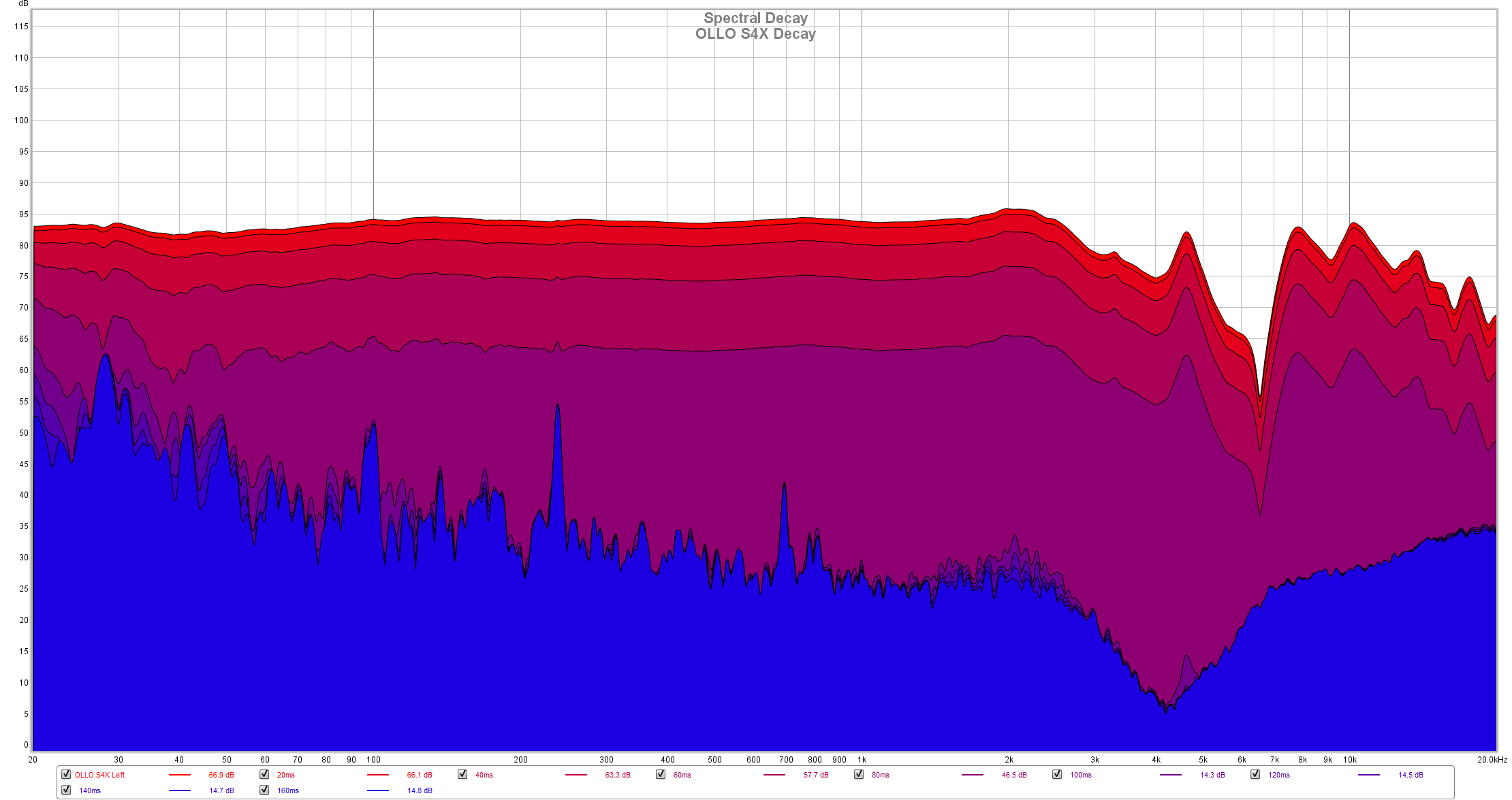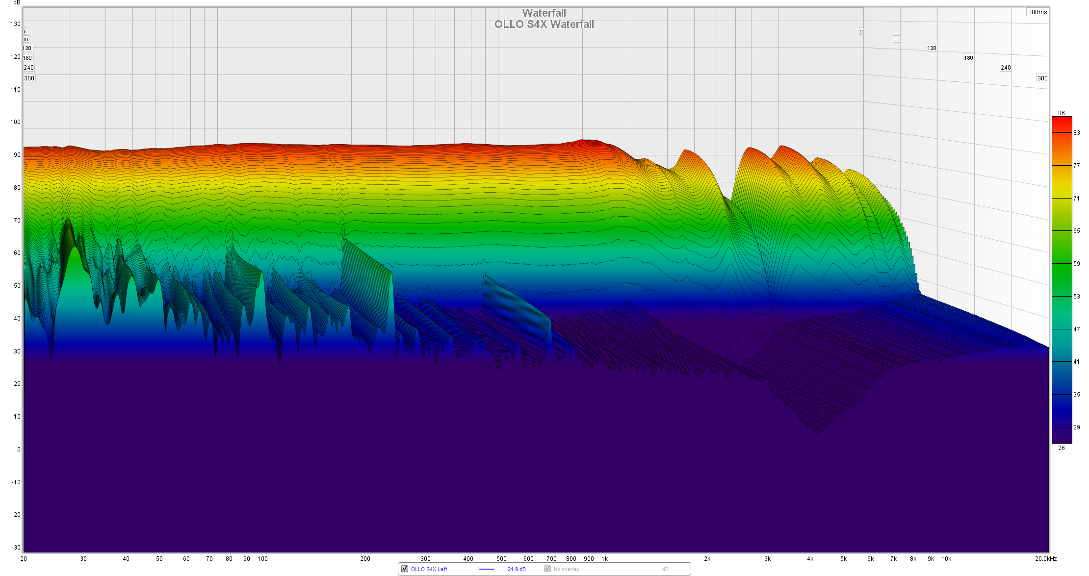 Waterfall and decay readings are looking pretty good too. You can spot the hotter parts in the FR and as you can see bass and midrange are standing out the most. Bass decays slower, but that is natural phenomenon, all dynamic headphones are doing that.