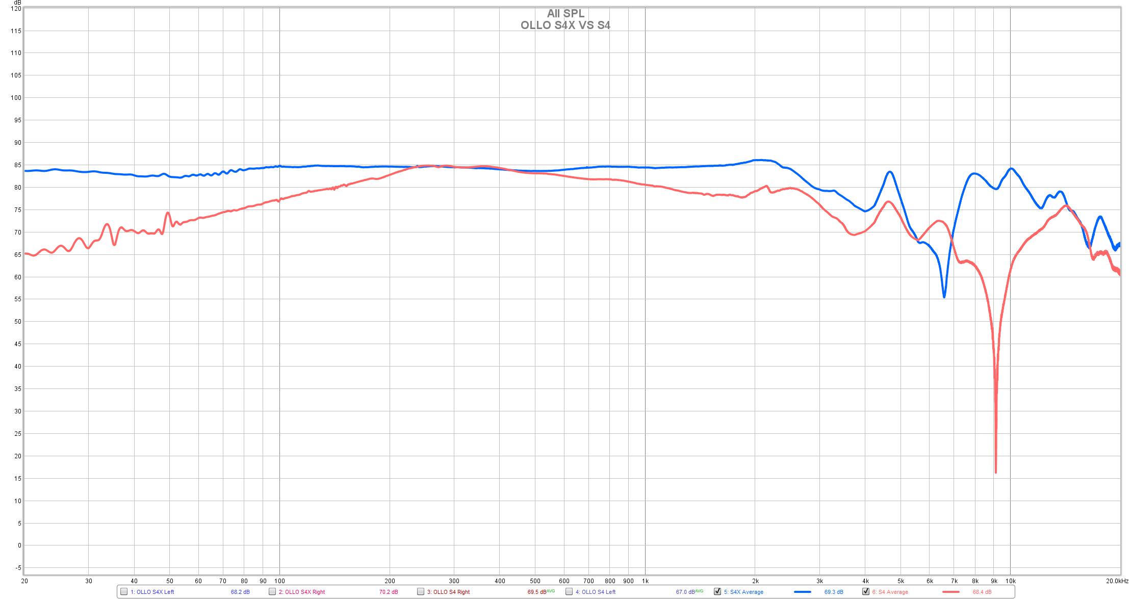 Want a graph versus the former S4? No problem, here it is. Red – S4, Blue – S4X. Amazing improvements in S4X, isn’t it? This is how great engineering looks like. Much better sub-bass performance, more midrange presence and much smaller dips in the treble. It is simply a must-have upgrade to the regular S4 and S4R.