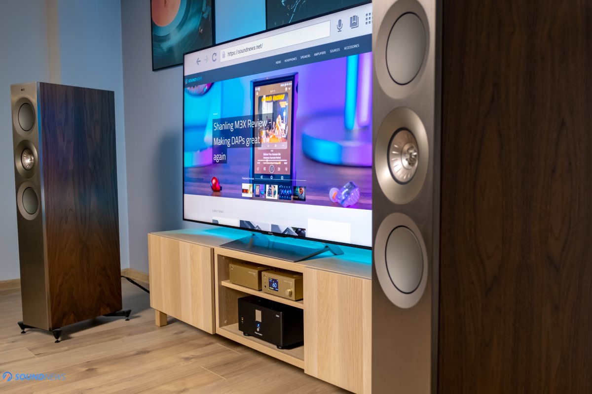 • Since it can drive directly a power amplifier, I’ve moved it in the living room where it was powering a KECES S300 power amplifier and driving a pair of KEF Reference 3 stand-floor loudspeakers.
