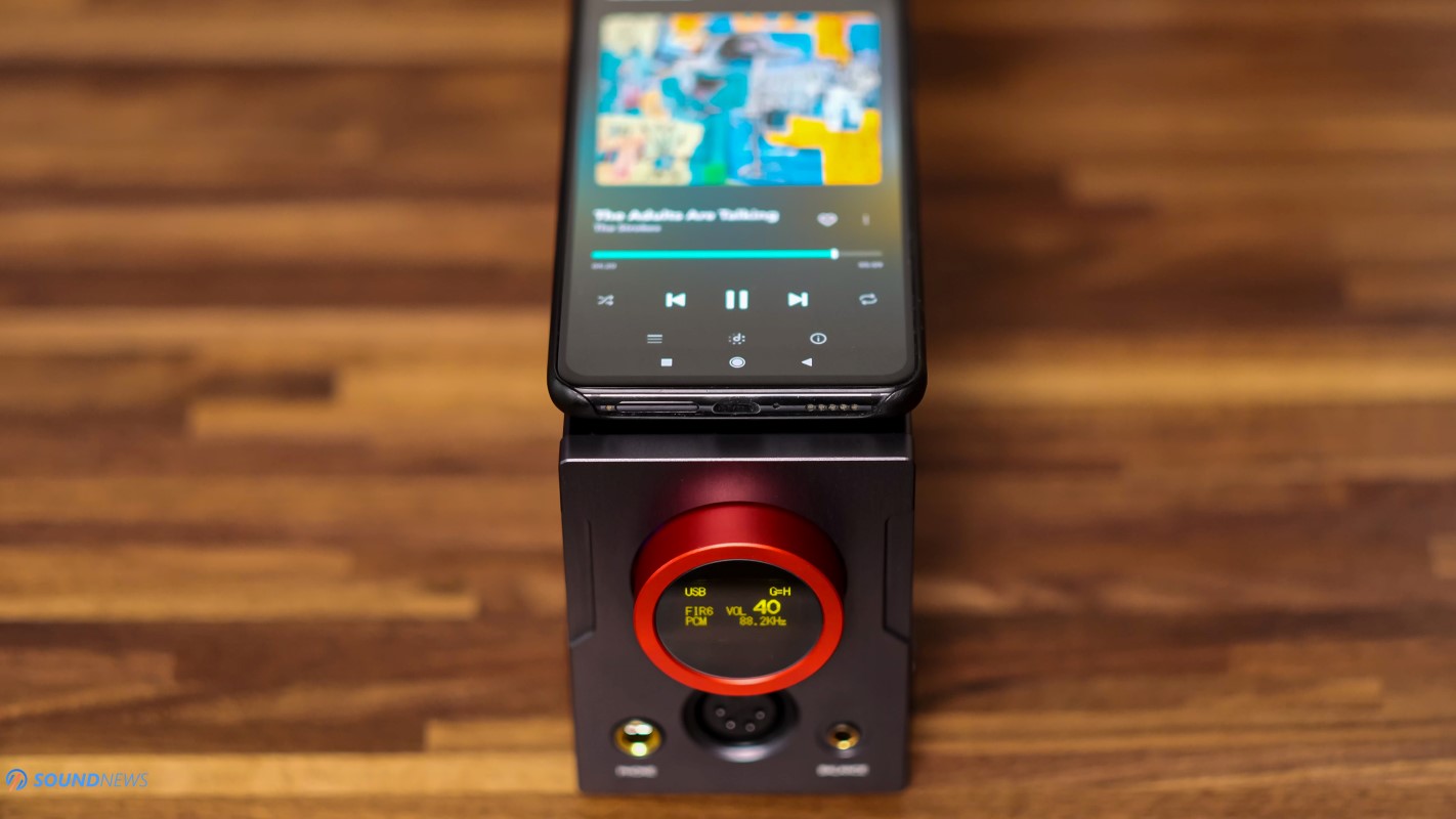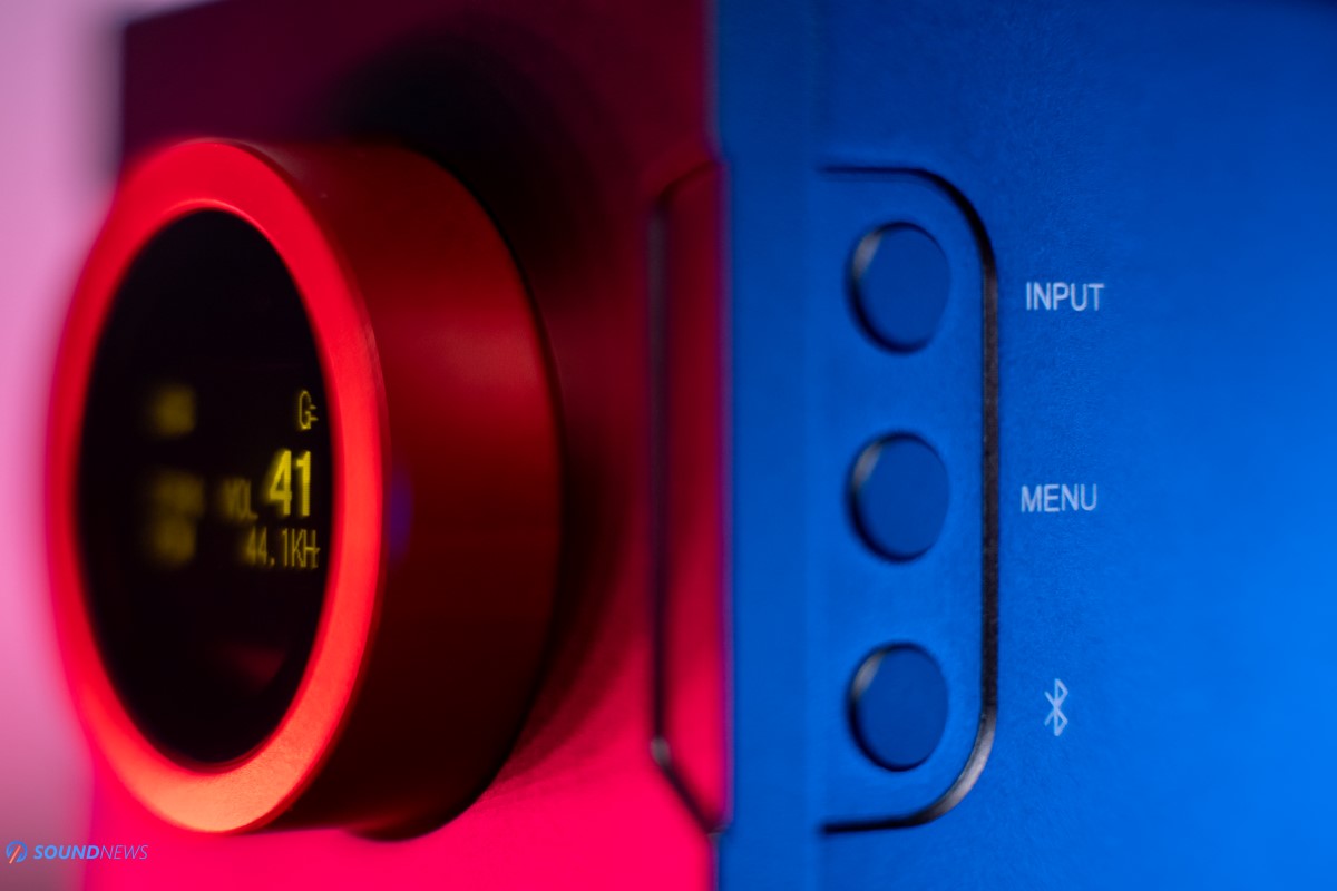 Its matte cherry-red volume wheel hides a circular 0.96” OLED screen in the middle, I never seen anything like this before, but immediately I’ve developed a deep appreciation for this clever design, that uses its limited space to the maximum. When XA-10 is engaged, several low-intensity blue LEDs will be shinning on both sides. In complete darkness there is very little light pollution and those didn’t bother me in late night listening sessions. There isn’t more to say about it, I think it looks cute, packed with a lot of inputs and outputs.